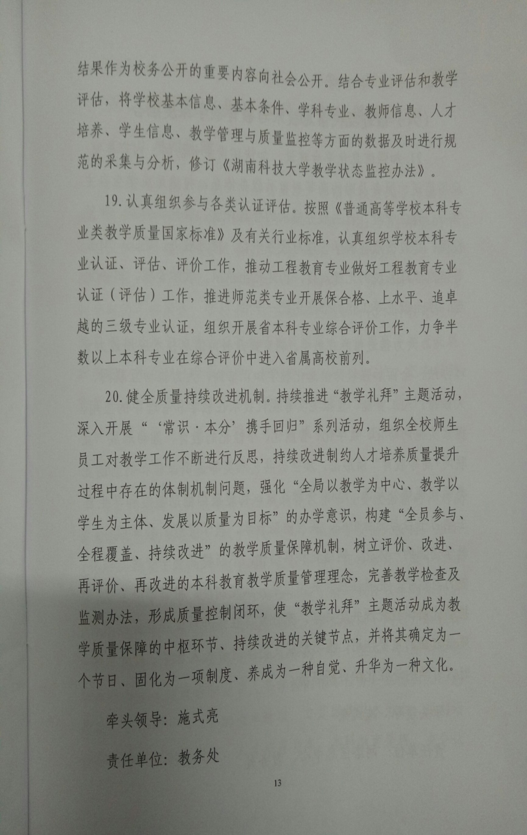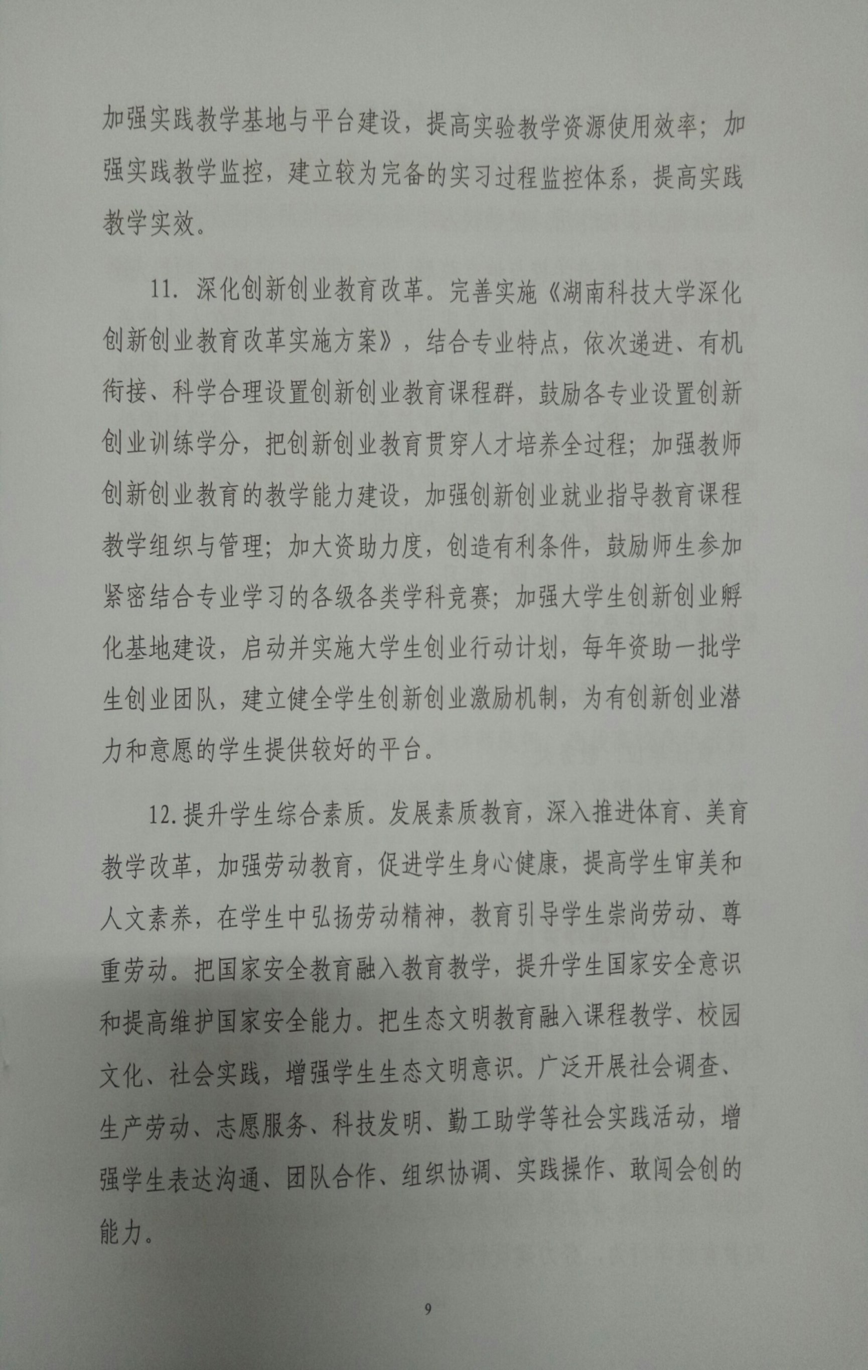 湖南科技大学振兴本科教育实施方案