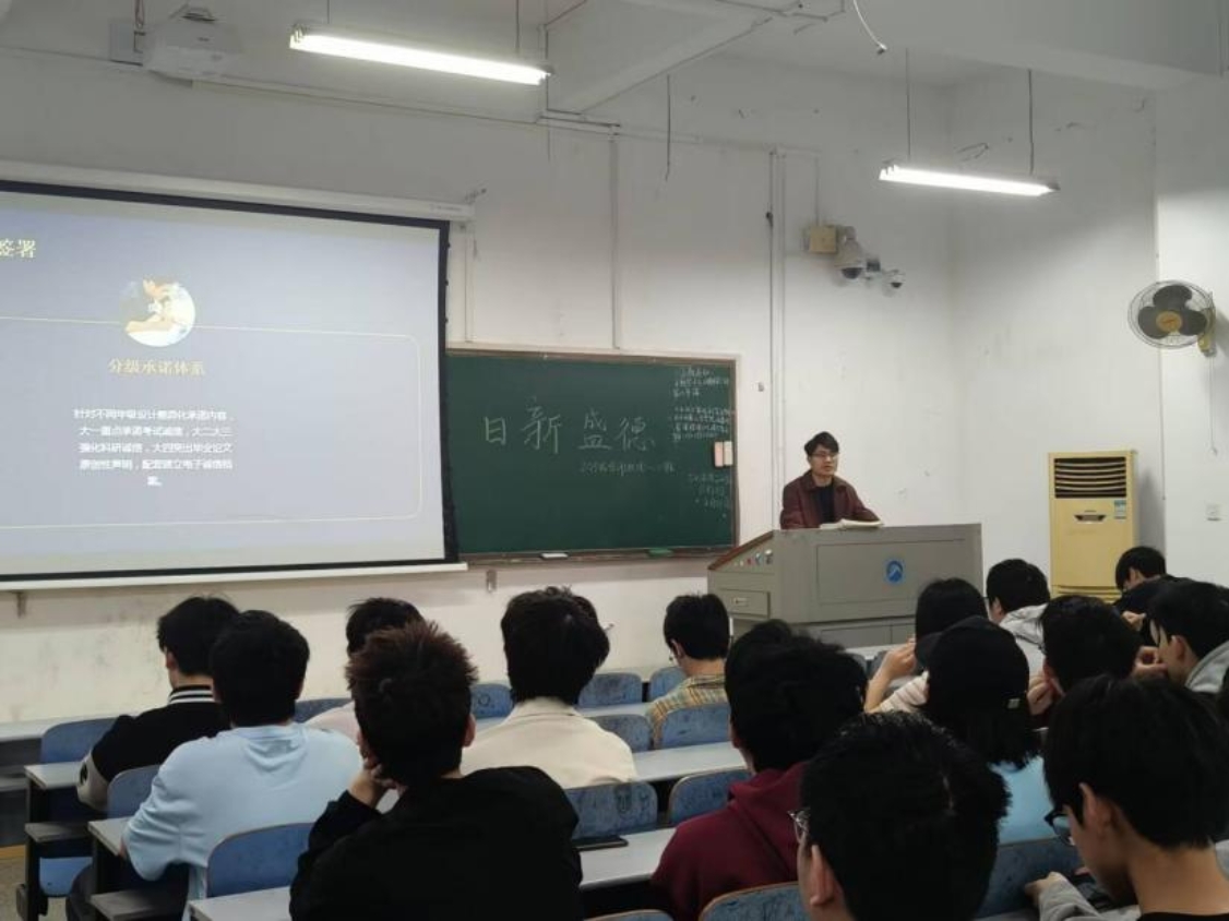 学院各班级重点讨论了课堂考勤和班级提高到课率,以及推进“无手机课堂”常态化建设,建立班级学风自查台账、学业预警、学业帮扶等方面内容,希望班上能营造积极向上的学习环境。各班还同步开展校规校纪专题学习,强化学生纪律意识。