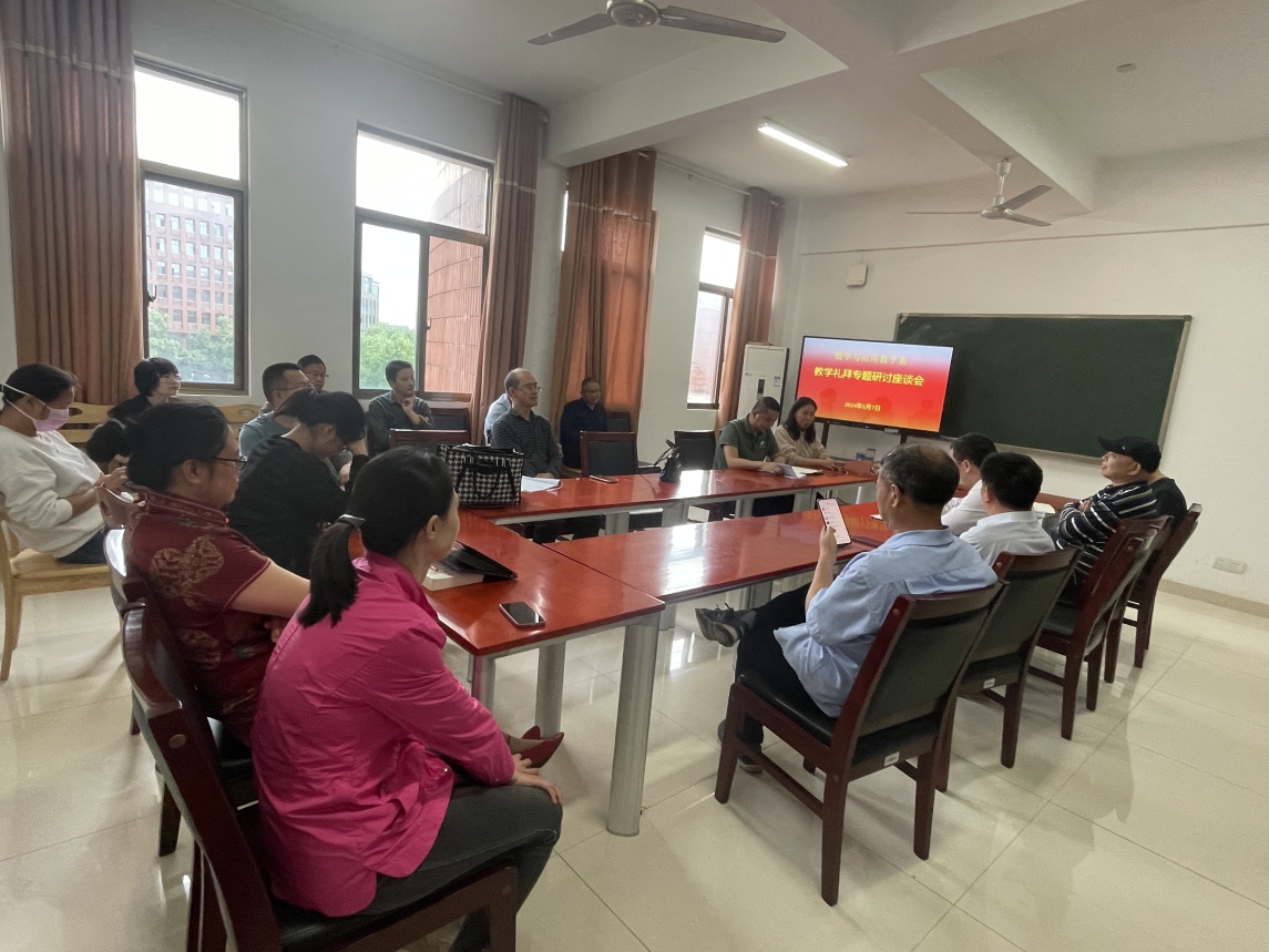 2024年5月7日下午,数学与应用数学系全体教师及部分学生代表在立志楼A413开展了以“自省·自律”为主题的教学研讨会。会议分为两个阶段:第一阶段主要围绕“五自”质量文化建设以及“以学为中心”的课堂教学改革进行研讨,第二阶段为师生座谈会。会议由系主任龙文高主持。