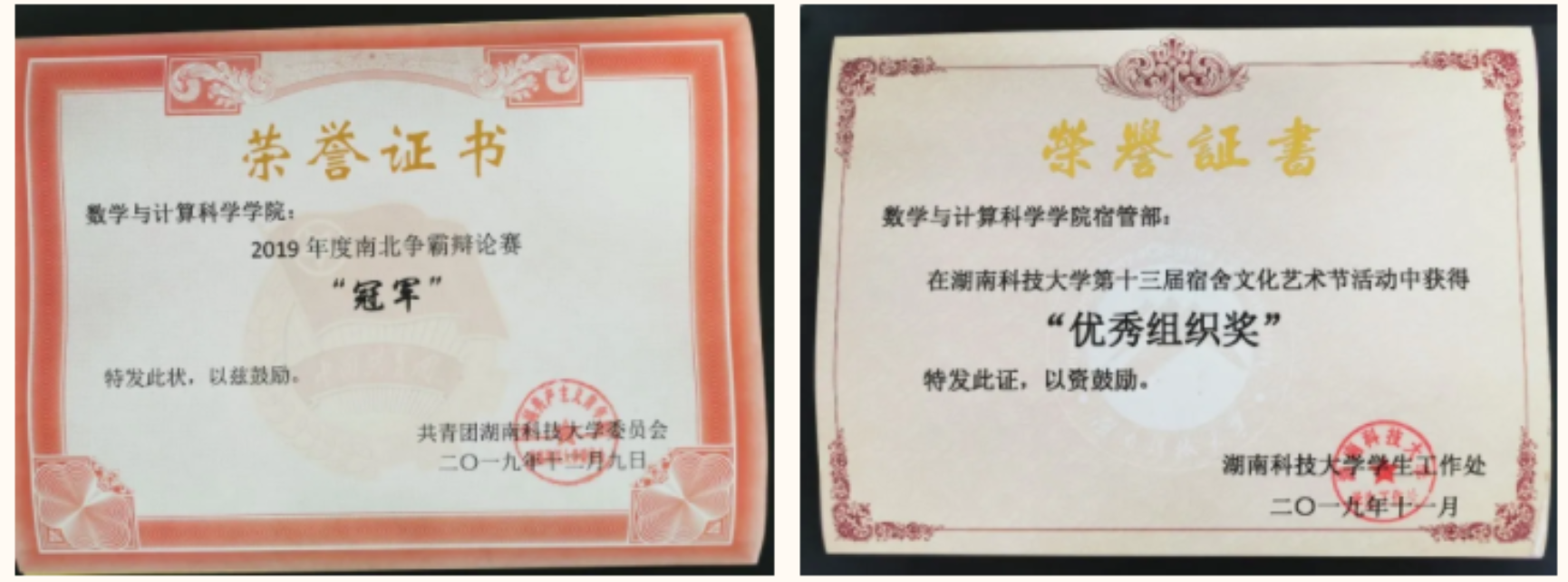 热烈祝贺beat365亚洲体育在线官网学生会入选2019-2020学年湖南科技大学“优秀学生分会”;数学建模协会被评为“十佳学生社团”;辅导员李大静荣获“优秀专职共青团干部”。